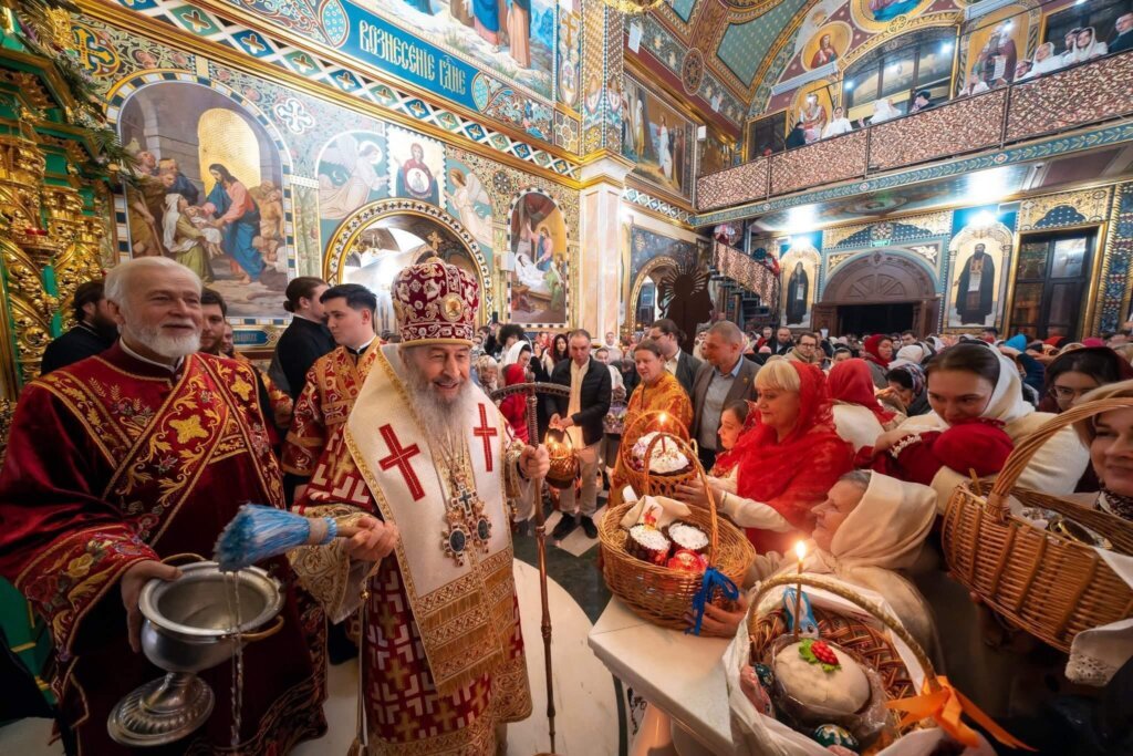 Наприкінці богослужіння Блаженніший архіпастир окропив святою водою вірян та їхні пасхальні кошики.